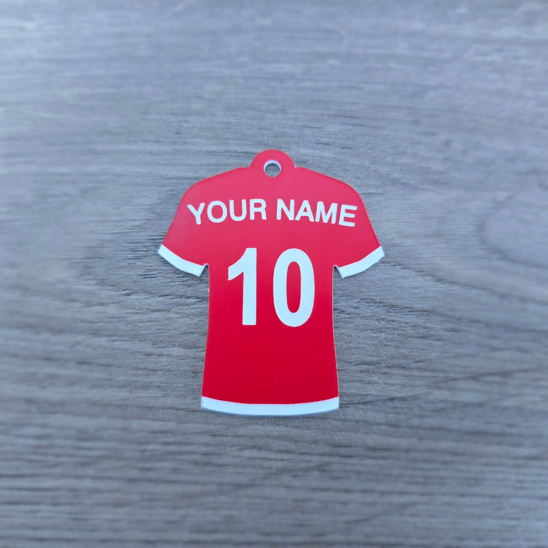 Show off your team spirit with this custom football shirt keyring – the perfect gift for any football fan, player, or coach! Each keychain is shaped like a mini football jersey and can be personalised with your name and number, making it a unique keepsake to carry everywhere.