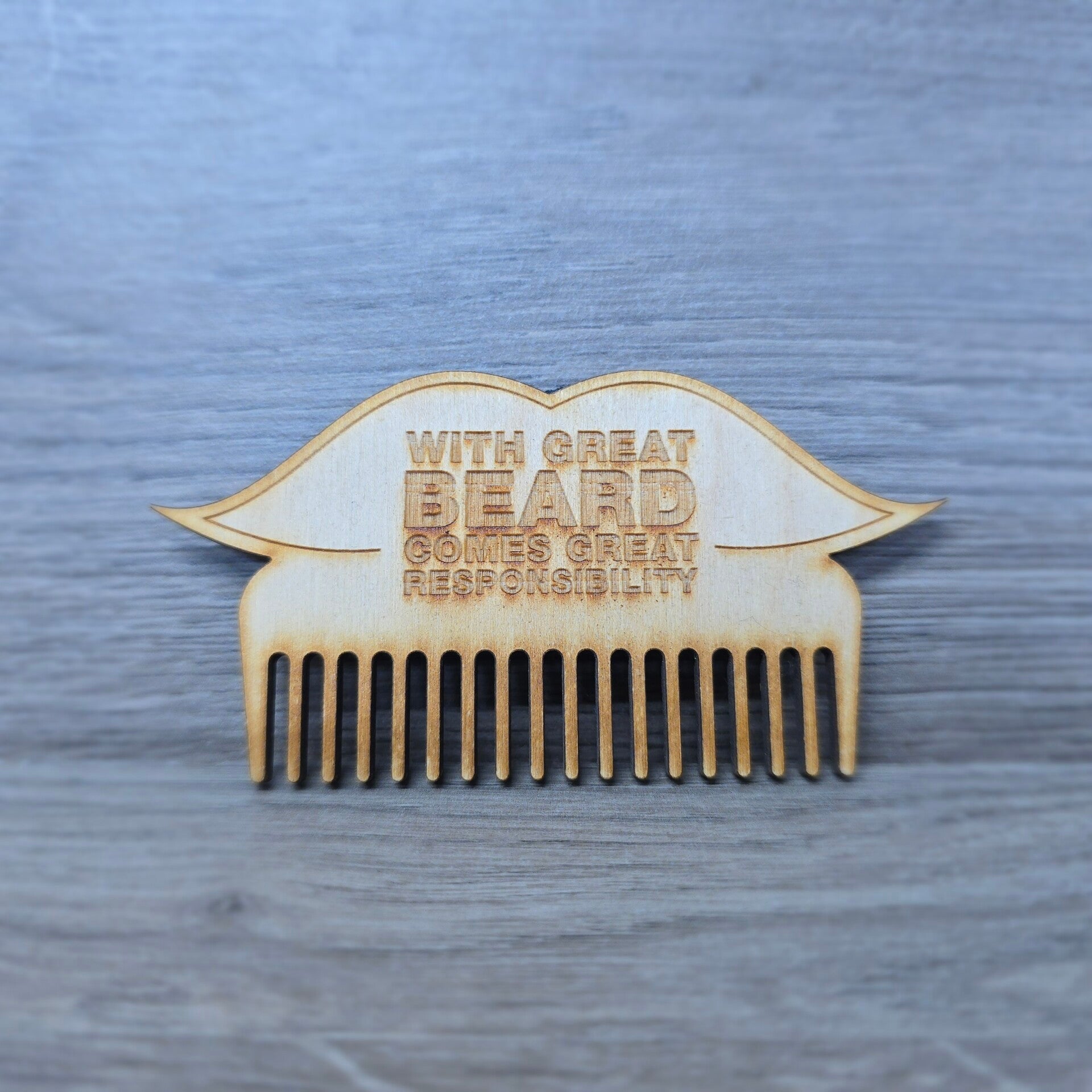 Keep your beard looking sharp and stylish with our wooden engraved beard comb, designed for effortless grooming and a touch of personal charm. Crafted from smooth, natural wood, this durable comb glides through facial hair without snagging, helping to reduce frizz, detangle, and evenly distribute oils or balms.